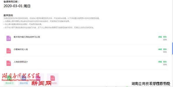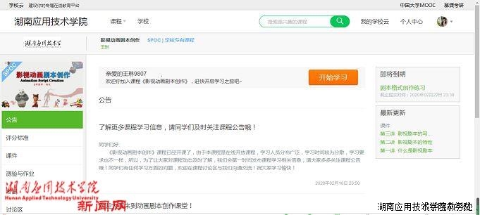 王玲老师所任教的《剧本写作》课程是湖南应用技术学院设计艺术学院的数字媒体艺术设计大二学生的专业课。该专业课作为后期分镜设计、影视制作、动画制作等课程来说,属于非常重要的基础,因此我在接受该教学任务前就已经查阅过很多的资料,对于课程的大纲等做到心中有数。根据学校教务处的统筹安排,选择了中国大学慕课中的江西科技学院杨成老师的《影视动画剧本写作》课程为异步SPOC课基础核心内容,同时通过中国大学慕课直播教程学习如何做好一门在线课程的学习。通过学习,陆陆续续地对后台进行了了解和设置,也对信息化的教学手段有了初步的理解。
